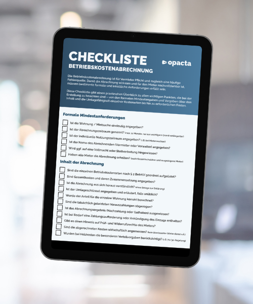 Die Erstellung einer korrekten Betriebskostenabrechnung ist für Vermieter oft eine Herausforderung. Unsere Überblicksliste hilft Ihnen, alle wichtigen Punkte im Blick zu behalten – für tiefergehende Informationen empfehlen wir unsere weiterführenden Blogbeiträge: Was sind Betriebskosten/Nebenkosten?, Wie legt man Betriebskosten/Nebenkosten wirksam auf den Mieter um? und Die Betriebskostenabrechnung.